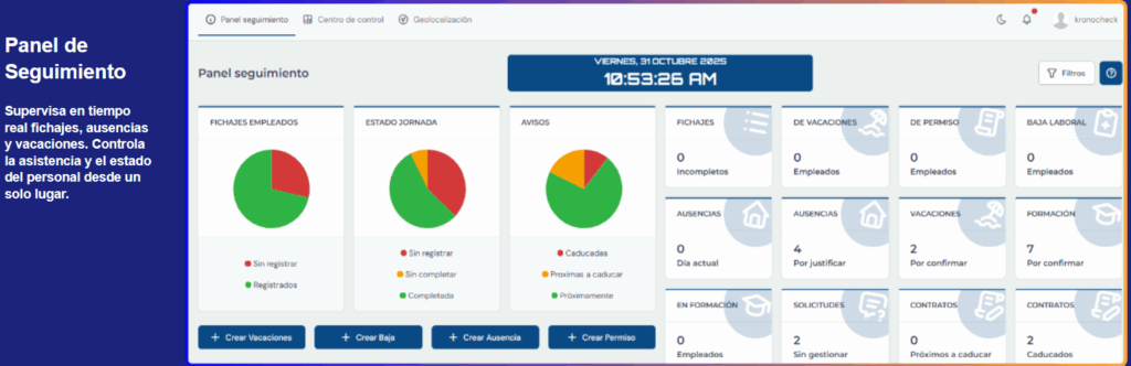 Kronocheck ofrece un registro de jornada digital completo y conforme al Real Decreto de 2025.